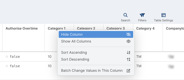 3. Go to the column you want to hide, right click and select “Hide column” .